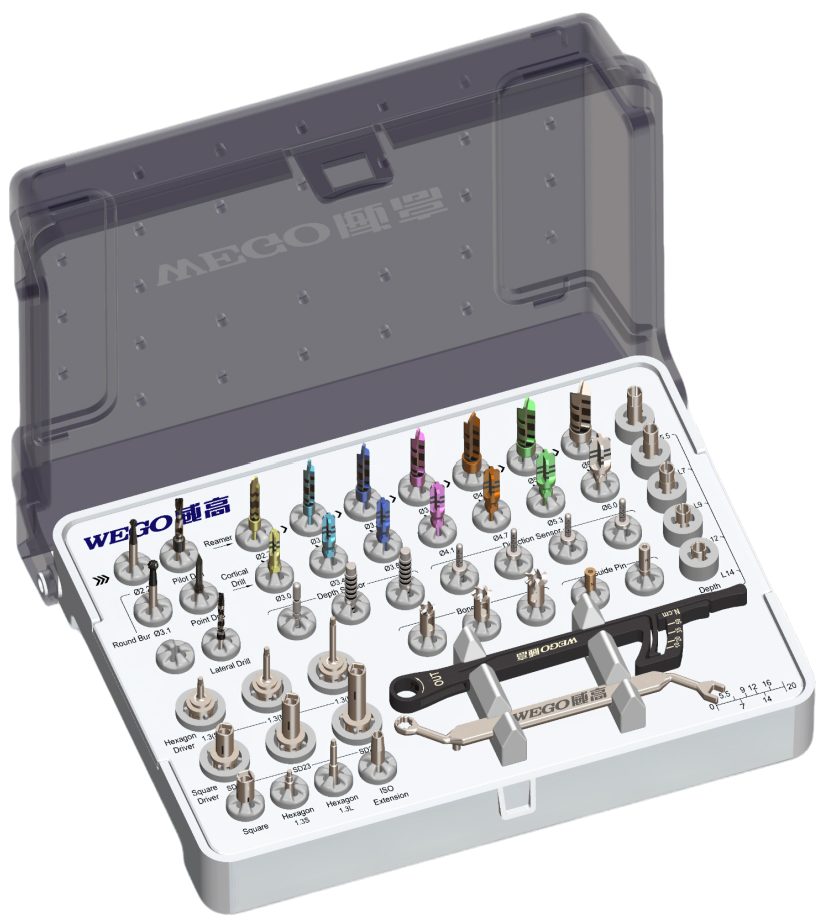 本套器械為Sedga牙種植體系統(tǒng)專用外科種植手術(shù)器械,采用顏色標記的設計,讓手術(shù)流程一目了然;整套器械由瑞士專業(yè)牙科工具供應商制造,加工精良,設計合理,精確耐用;滅菌盒可反復高溫壓力滅菌,便于清洗,內(nèi)置配件盒,方便器械滅菌與使用。