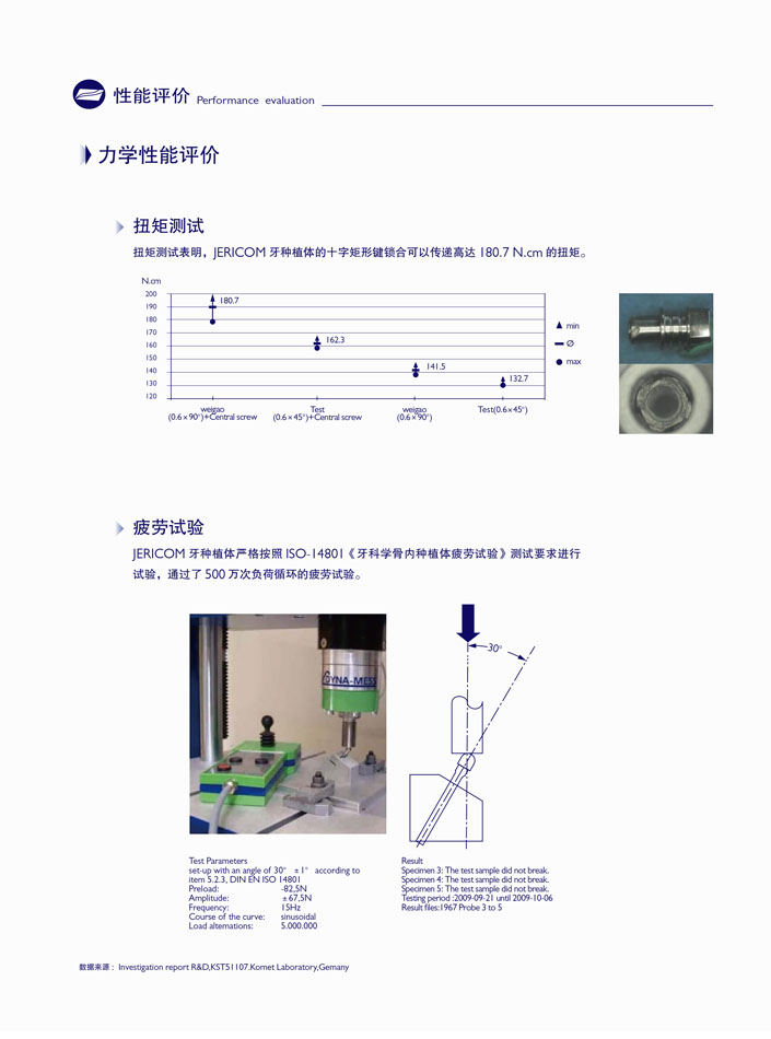 疲勞測試結(jié)果:WEGO種植體嚴格按照ISO-14801《牙科學骨內(nèi)種植體疲勞試驗》測試要求進行試驗,通過了500萬次負荷循環(huán)的疲勞試驗。