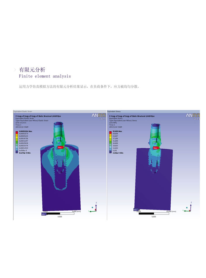 有限元分析結(jié)果:運用力學仿真模擬方法的有限元分析結(jié)果顯示,在負荷條件下,應力被均勻分散。
